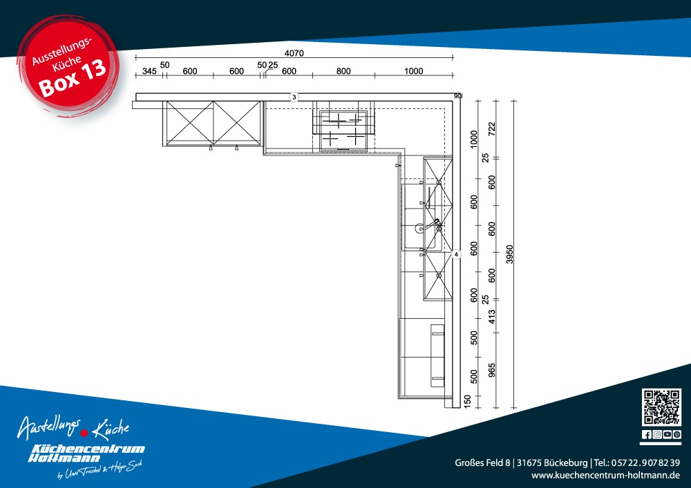 Wir beraten Sie gerne, ob diese Küche für Ihre Räumlichkeiten geieignet ist und können gegebenenfalls Änderungen vornehmen, damit die Küche perfekt passt.