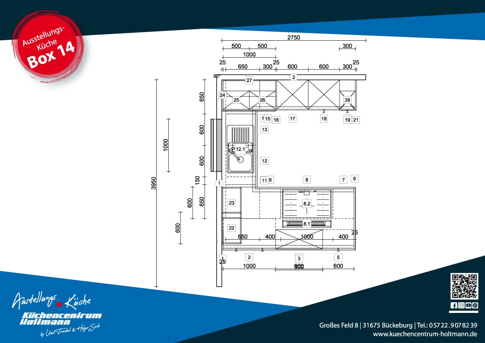Wir beraten Sie gerne, ob diese Küche für Ihre Räumlichkeiten geieignet ist und können gegebenenfalls Änderungen vornehmen, damit die Küche perfekt passt.