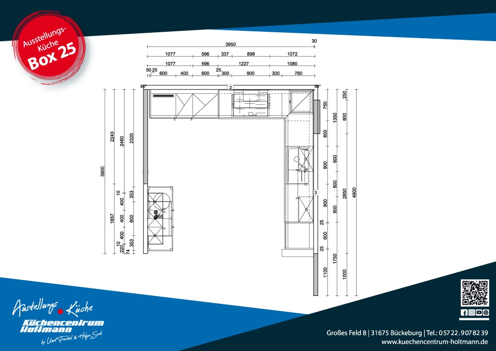 Wir beraten Sie gerne, ob diese Küche für Ihre Räumlichkeiten geieignet ist und können gegebenenfalls Änderungen vornehmen, damit die Küche perfekt passt.