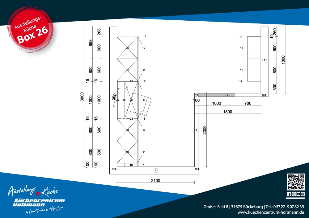 Wir beraten Sie gerne, ob diese Ankleide für Ihre Räumlichkeiten geieignet ist und können gegebenenfalls Änderungen vornehmen, damit die Küche perfekt passt.