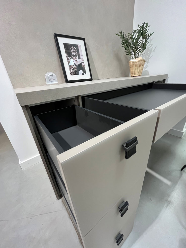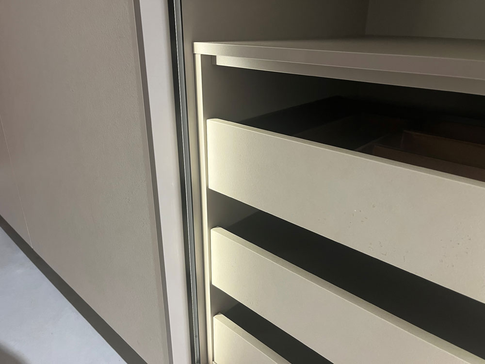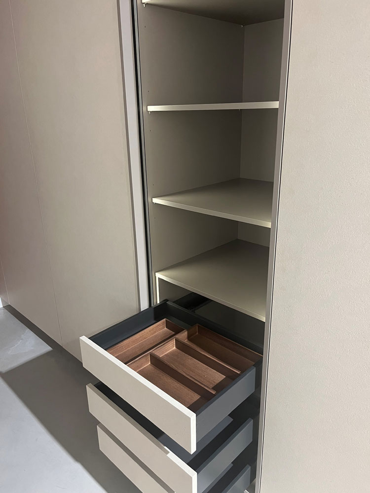 Grifflose Hochschränke, mit blendfreier Innenbeleuchtung mit Automatikschaltung.