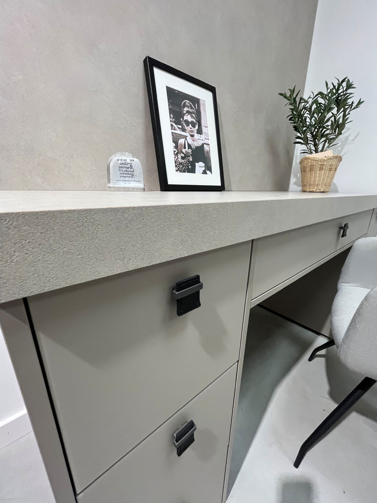 Diese Kombination aus langlebigen Materialien und durchdachtem Design verbindet Ästhetik und Funktionalität. Zweckmäßige Aufbewahrungslösungen, schöne Oberflächen und flexible Gestaltungsmöglichkeiten machen dieses Ankleidezimmer zu einem Ort, an dem Ordnung und Stil perfekt harmonieren.